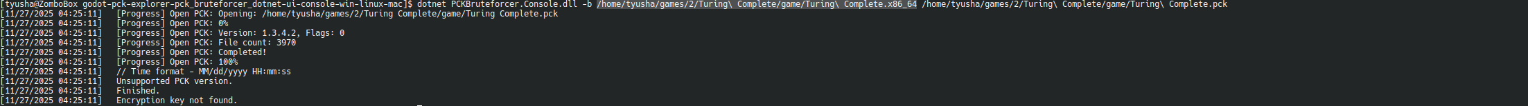 Also, if you are faced with encrypted PCK for Godot 4 and you want to decrypt it, then you may be interested in PCK Bruteforcer. It can be purchased here or built from source.
