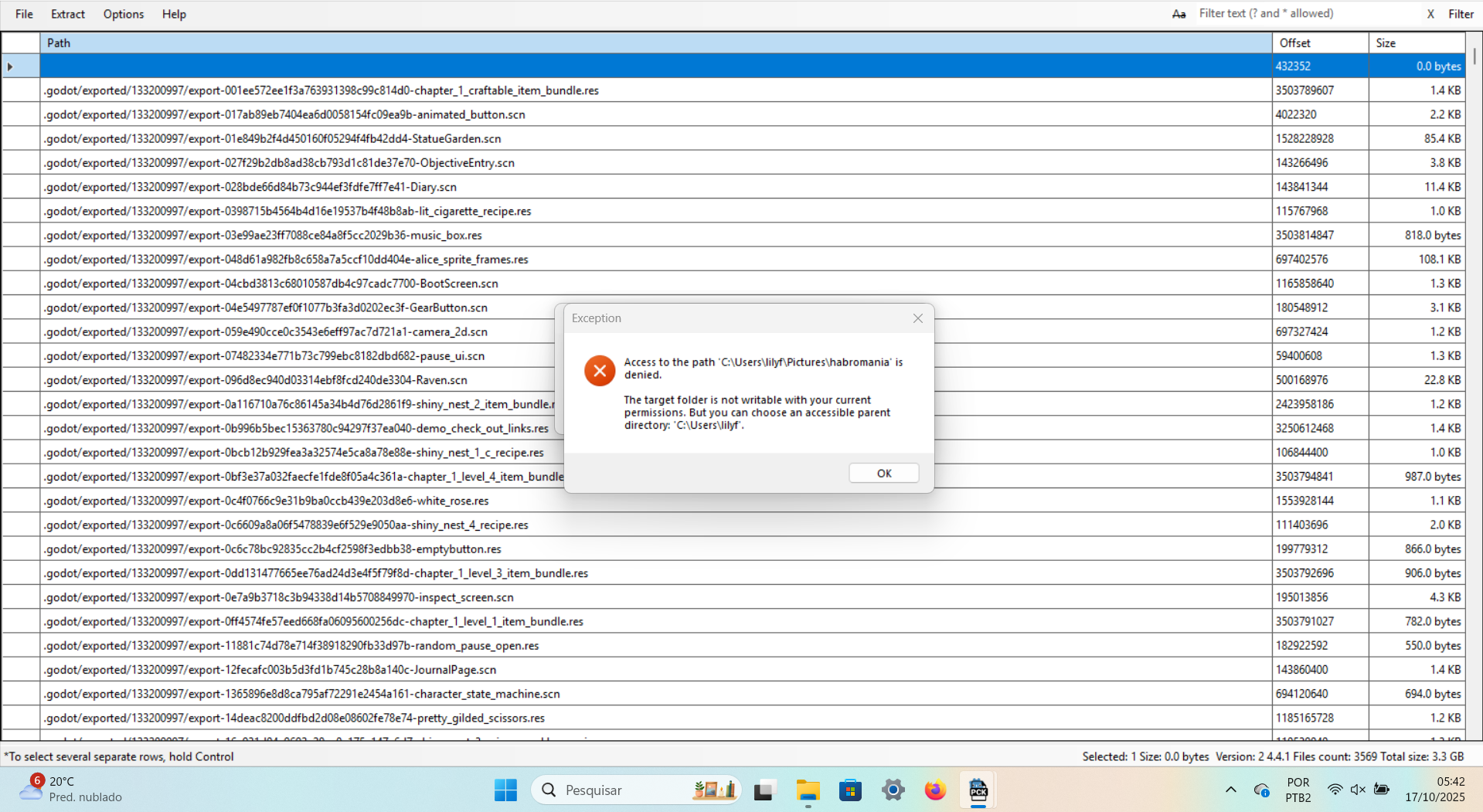 Hi again!! I formatted my computer and the same message still appeared, but when I pressed Ctrl + A and clicked on extract selected, it worked. I found this bug weird, but anyway, thanks for responding. Your software is helping me a lot. xoxo <3